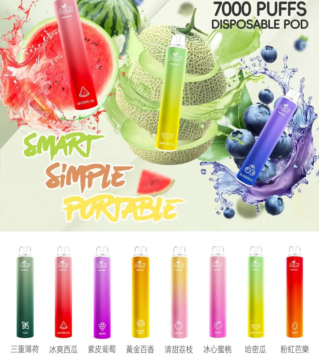 LIMI 7000口拋棄式電子煙|長效續航×濃郁口感×氣動免按鍵