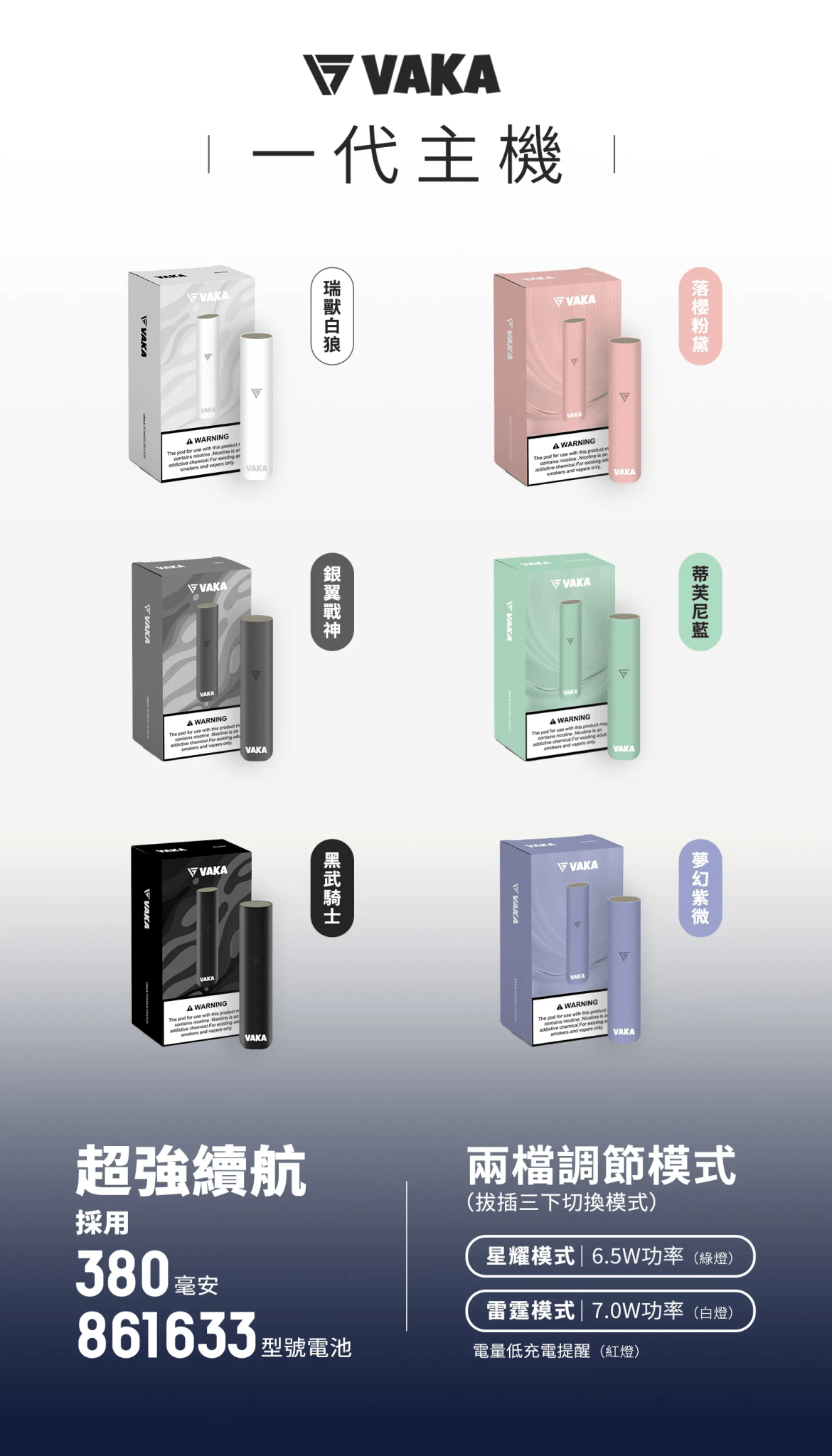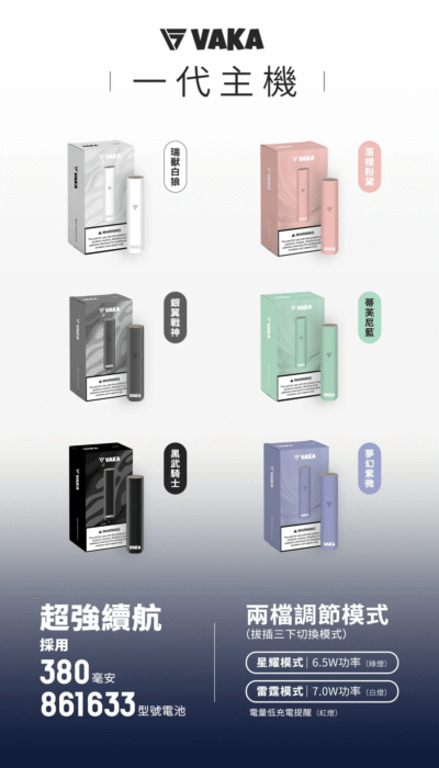 VAKA 主機是一款結合時尚設計與高效能輸出的電子煙設備,專為追求口感與穩定性的用戶打造。機身輕巧,攜帶方便,外觀流線設計兼具質感與實用性。搭載智慧晶片控制系統,能夠自動調節功率,提供穩定霧化效果與持續順滑的吸感。配備大容量電池與 Type-C 快充,長效續航讓你隨時隨地暢享體驗。